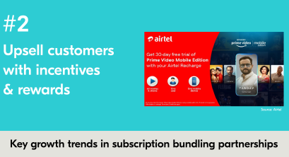 - Trend: Telco’s are incentivizing pre-pay customers to top-up more reliably and by greater amounts through bundled offers. The same incentive programs reward post-pay subscribers for upgrading plans by offering them extras, like a month of free Prime Video or Netflix