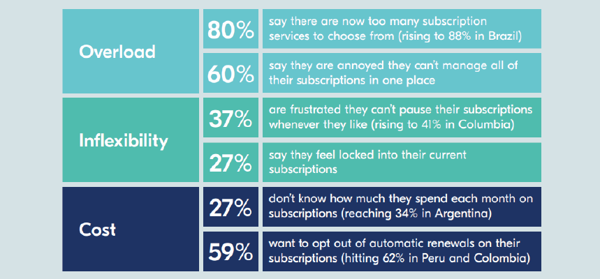 Multiple subscriptions, combined with inflexible subscription management, and rising prices are combining to create a major headache for LATAM subscribers.