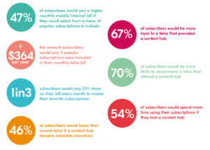 If a telco were to develop a content hub, the majority of subscribers (61%) would be happy to pay for it. In fact, the 19% of subscribers would pay 50%+ on their monthly bill, if their favorite subscriptions were included in the price — equivalent to an extra $364 per year*.