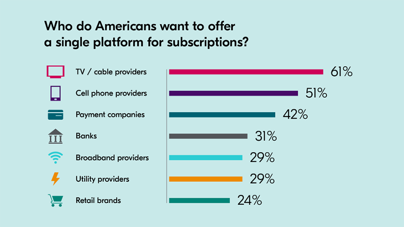 According to the data, 71% of subscribers would spend more time using subscription services if a single app was available, while 62% would sign up to more subscription services if they came as a centralized package.