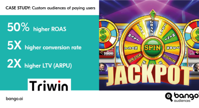 Triwin Games gained 5X higher install to payer conversion and 50% increase in ROAS for their social casino games by targeting proven payers with Bango Audiences.